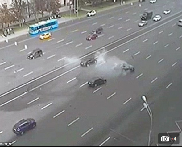 وتوضح صور كاميرا المراقبة لقطات وقوع الحادث على جادة كوتوزوفسكي في العاصمة الروسية موسكو حينما ارتطمت سيارة مرسيدس بالـBMW الرئاسية و تهشّمت واجهة السيارتين.