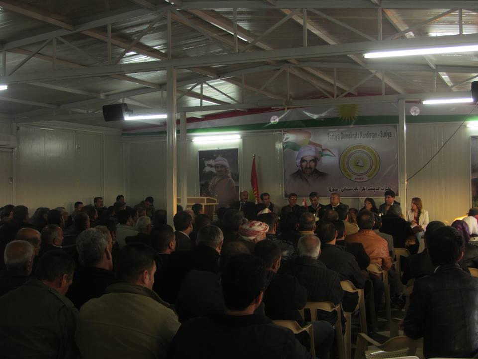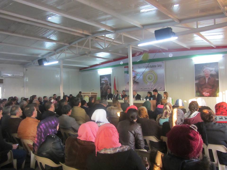 RojavaNews_مخيم دوميز: عقد عضو المكتب السياسي لحزب الديمقراطي الكوردستاني _سوريا و الهيئة العليا للمعارضة السورية الدكتور عبد الحكيم بشار في محادثات "جنيف3 "ندوة سياسية , بحضور جمهور غفير من الحزب الديمقراطي الكوردستاني _ سوريا - منظمة دهوك ومخيمات التابعة لها- في 8/2/2016 , الساعة 4 مساءً في مقر الحزب .