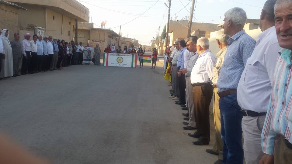 حيث أقيم الاعتصام أمام مكتب محلية المجلس في بلدة تربه سبية ندد فيها المعتصمون ممارسات التي يقوم بها الـ PYD ضد اعضاء احزاب المجلس الوطني الوطني الكوردي .