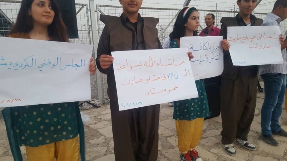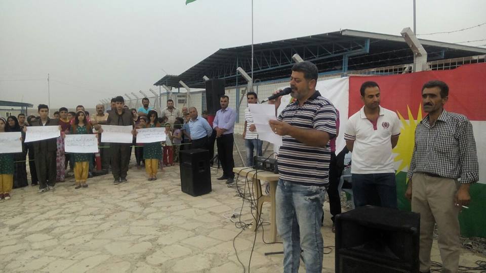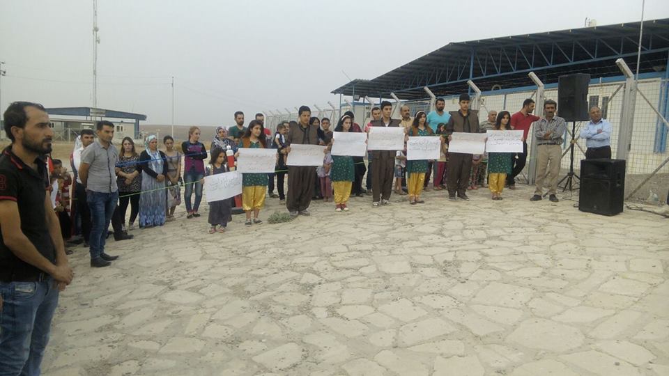 Rojava News: خرج اللاجئون الكورد في مخيم داراشكران بإقليم كوردستان في اعتصام جماهيري ضد سياسات وممارسات حزب الاتحاد الديمقراطي (PYD) واستنكارا لاعتقال القيادات الكوردية والاستخفاف برموزها ومقدساتها القومية، بحضور عضو ممثلية الإقليم رامان ملا، وممثلي أحزاب المجلس في المخيم، وحشد كبير من أهالي المخيم.