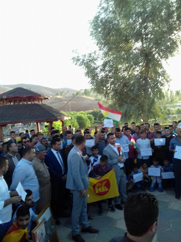و ندد المتظاهرين بالأعمال الـ PYD الإجرامية على عشيرة خێرگا و تحديداً , هجومهم الأخير على قرية "بانێ شكفتێ" تابعة لمنطقة المالكية في محافظة الحسكة الواقعة على حدود اقليم كوردستان .