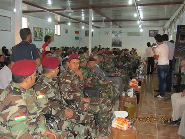RojavaNews_مخيم فايدة: احييت منظمة دهوك للحزب الديمقراطي الكوردستاني _سوريا , 23/9/2016 في مخيم فايدة بدهوك اربعينية الشهداء الثلاثة الذين استشهدوا في محمور خازر ضد التنظيم الارهابي داعش (ابراهيم حمزة فرحو والشهيد كاميران حسين ،والشهيد حبيب قدري ), بمشاركة اهالي المخيم ،وحضور قيادات من الحزب الديمقراطي الكوردستاني ،ووفد من قيادة قوات الزيرفاني برئاسة اللواء بهجت .