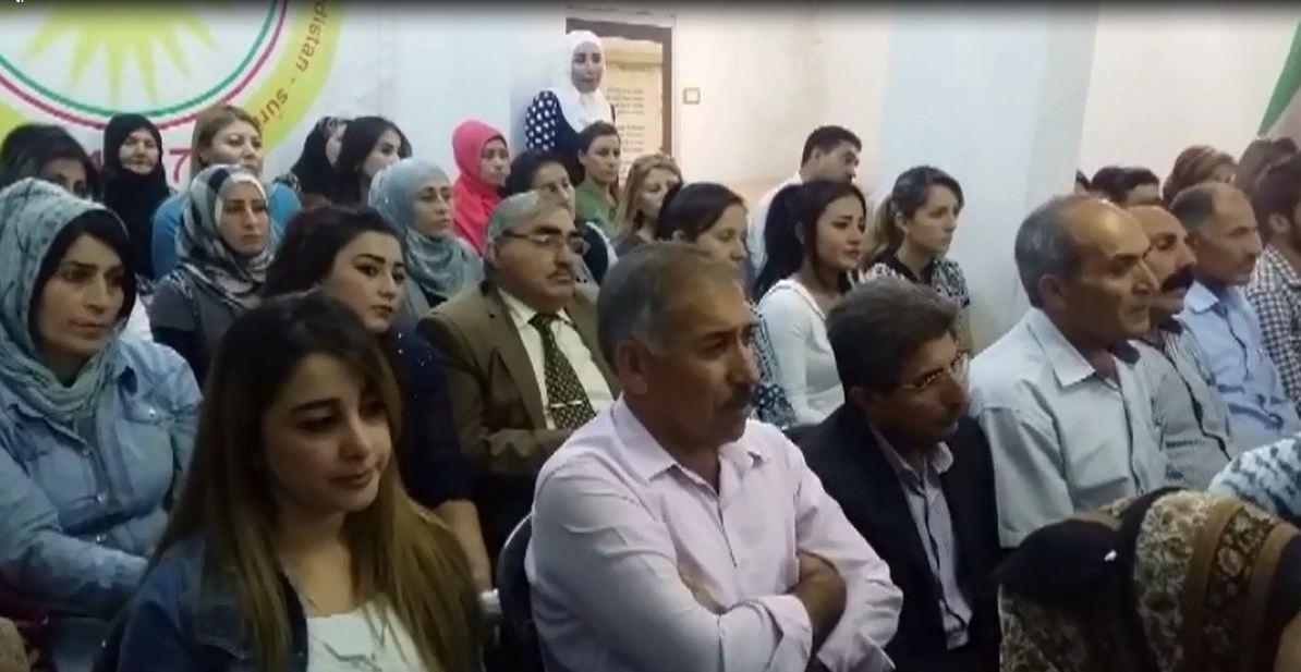 RojavaNews: بدعوة من منظمة الحزب الديمقراطي الكوردستاني سوريا في كركي لكي وبحضور ممثلي المجلس الوطني الكوردي وممثلي الحراك السايسي والشخصيات الوطنية والدينية وبمناسبة مرور اربعة اعوام على اختطاف المناضل القيادي في الحزب اقيم في قاعة الشهيد نصر الدين برهك وقفة احتجاجية تضانمية مع المعتقلين في سجون الـ ب ي د وعلى رأسهم بهزاد دورسن