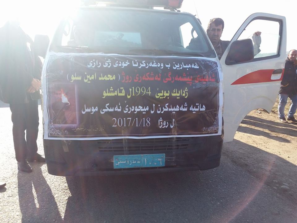 واستشهد البيشمركة "محمد أمين أحمد سلو" من مرتبات الفوج الاول المنضوي تحت لواء بيشمركة كوردستان سوريا يوم أمس الأربعاء 18-1-2017، نتيجة إصابته بطلقة قناص في وقت سابق خلال عملية عسكرية كانت قد شنتها قوات البيشمركة ضد مسلحي داعش في منطقة آسكي موصل .