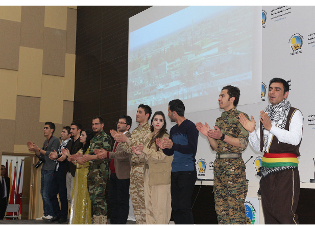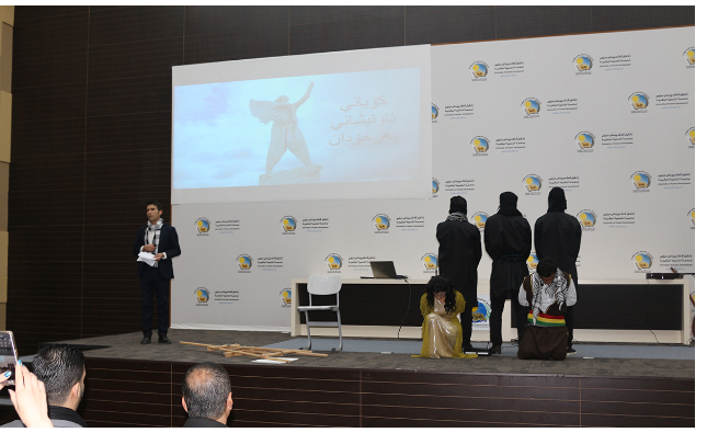 RojavaNews: قامت اليوم 9/2/2017, مجموعة من طلبة الكورد السوريين في جامعة التنمية البشرية بمدينة السليمانية , بتقديم عرض مسرحي, بمناسبة ذكرى الثانية لتحرير مدينة كوباني من التنظيم "داعش" الإرهابي.