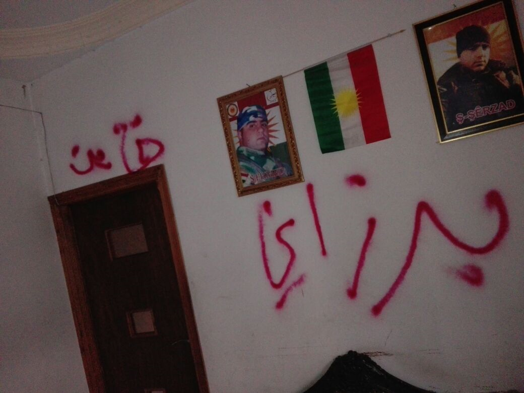 افاد مصدر لـ RojavaNews بأن مسلحيو ( PYD ) الجناح السوري للحزب العمال الكوردستاني اليوم الاربعاء 8 .3 . 2017 هاجموا مكتب الحزب اليكيتي الكردي في سوريا بحي ميسلون مدينة قامشلو قاموا بكتابة شعارات تسيئ لشخصية الرئيس بارزاني على جدران المكتب.