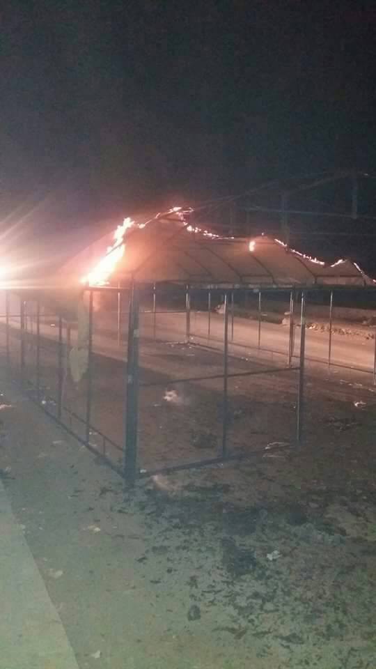 RojavaNews: اضرم مجهولون النار في الخيمة التي نصبت من قبل اهالي قامشلو المطالبين بتوصيل الكهرباء ليلية امس الاربعاء 28 . 6 . 2017 .