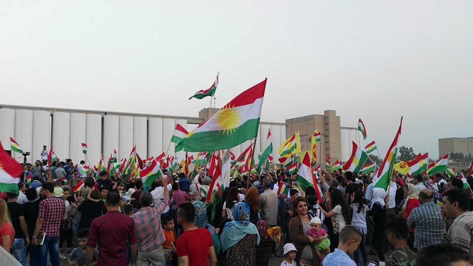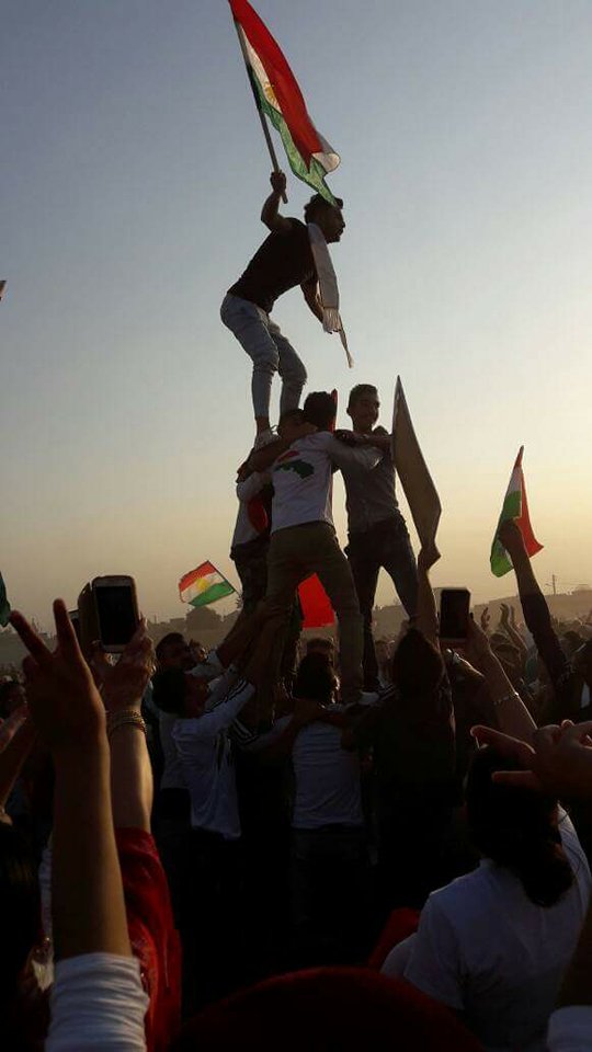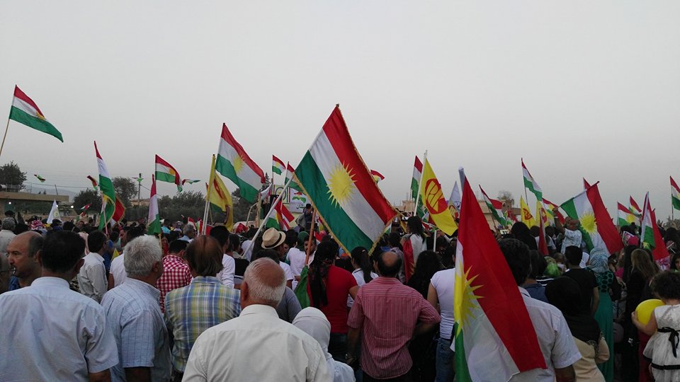 RojavaNews :إحتفل أكثر من 10 آلاف كوردي من أعضاء و ومؤيدي وقياديي المجلس الوطني الكوردي دعما ً لإستقلال إقليم كوردستان ,في الساعة الرابعة من عصر اليوم الجمعة 15-أيلول 2017 في ساحةٍ خلف الصوامع ب #قامشلو,تحت شعار:نحتفل ليس من اجل الادلاء بأصواتنا ,إنما لنسمع صوتنا للعالم.
