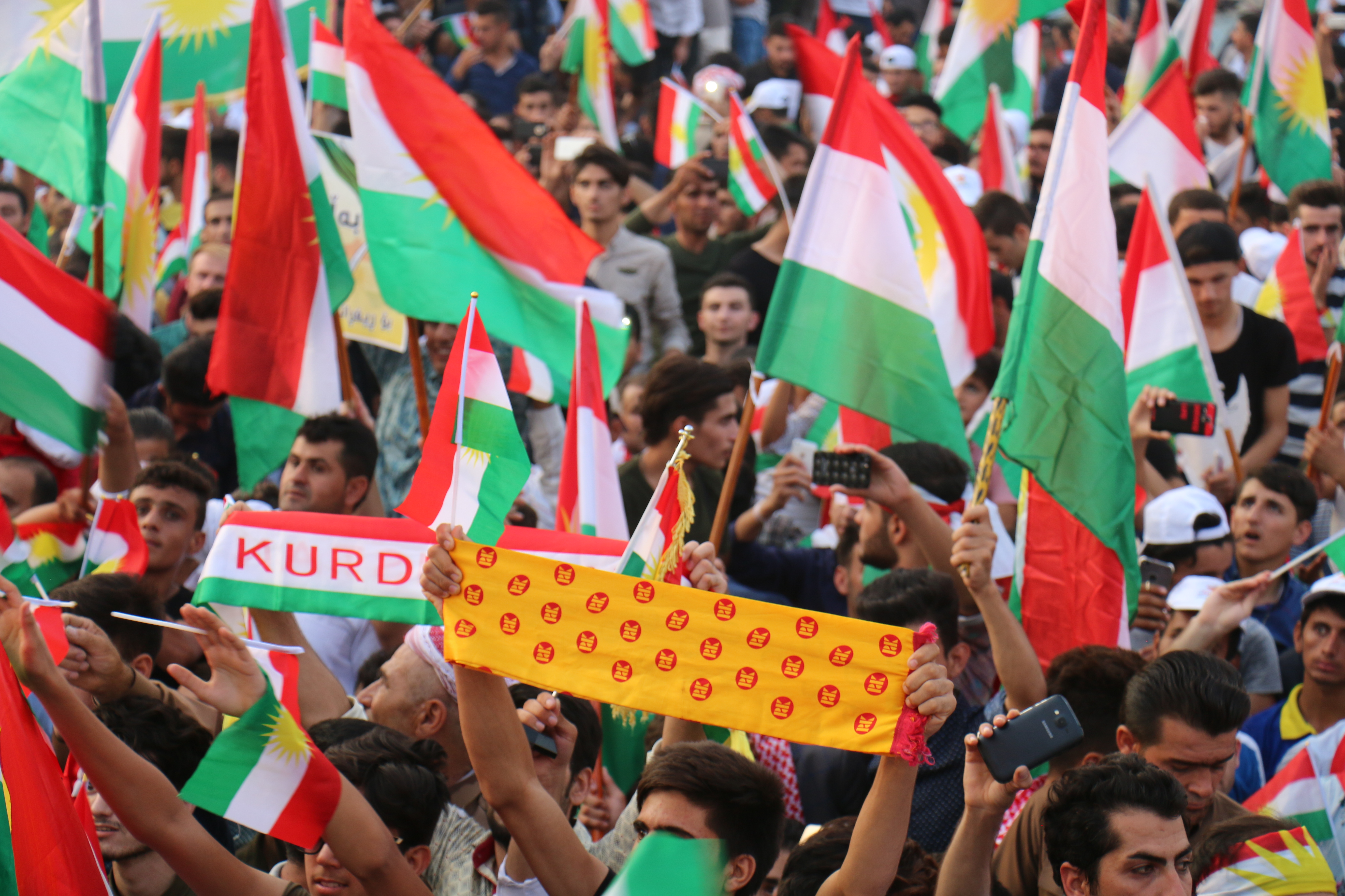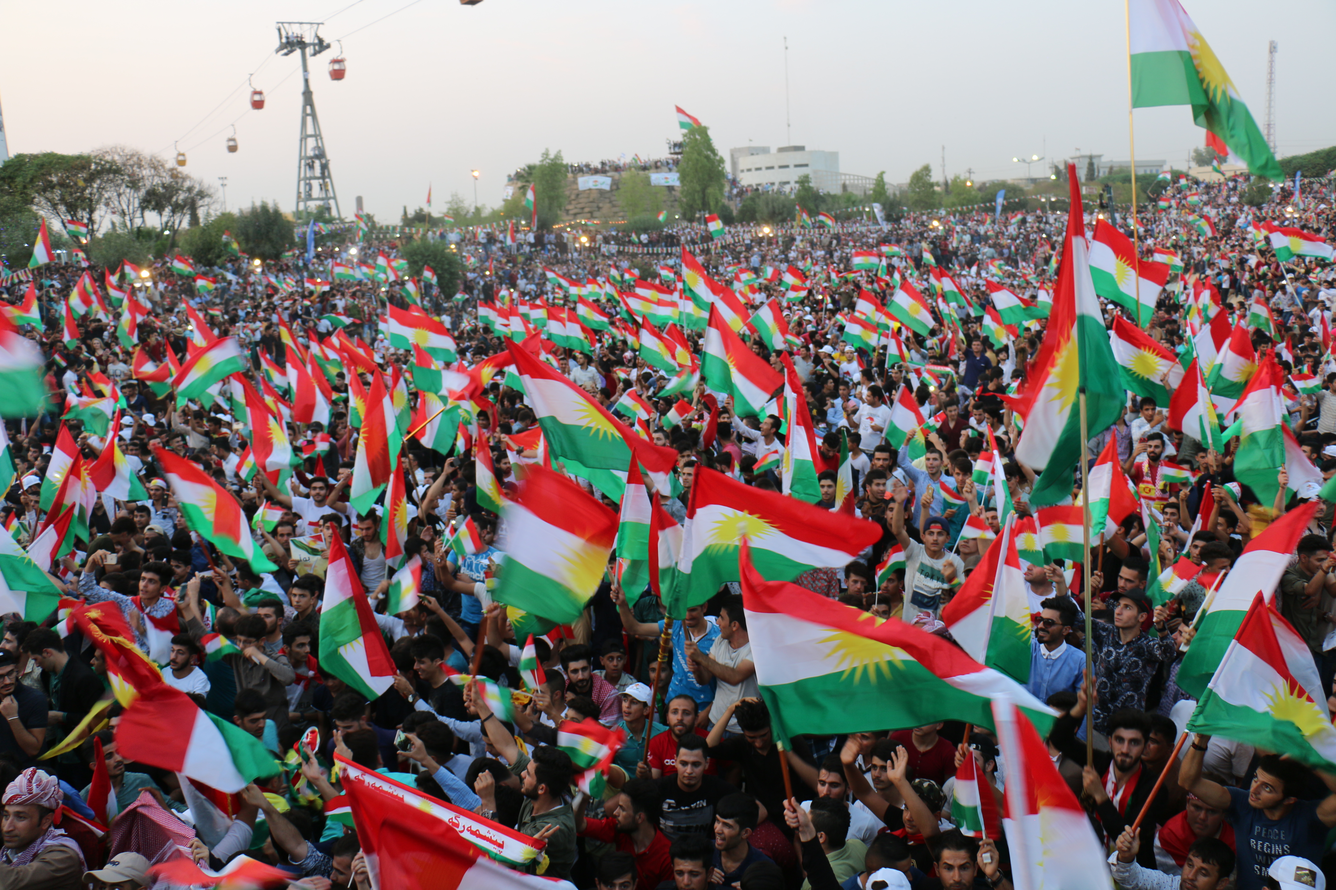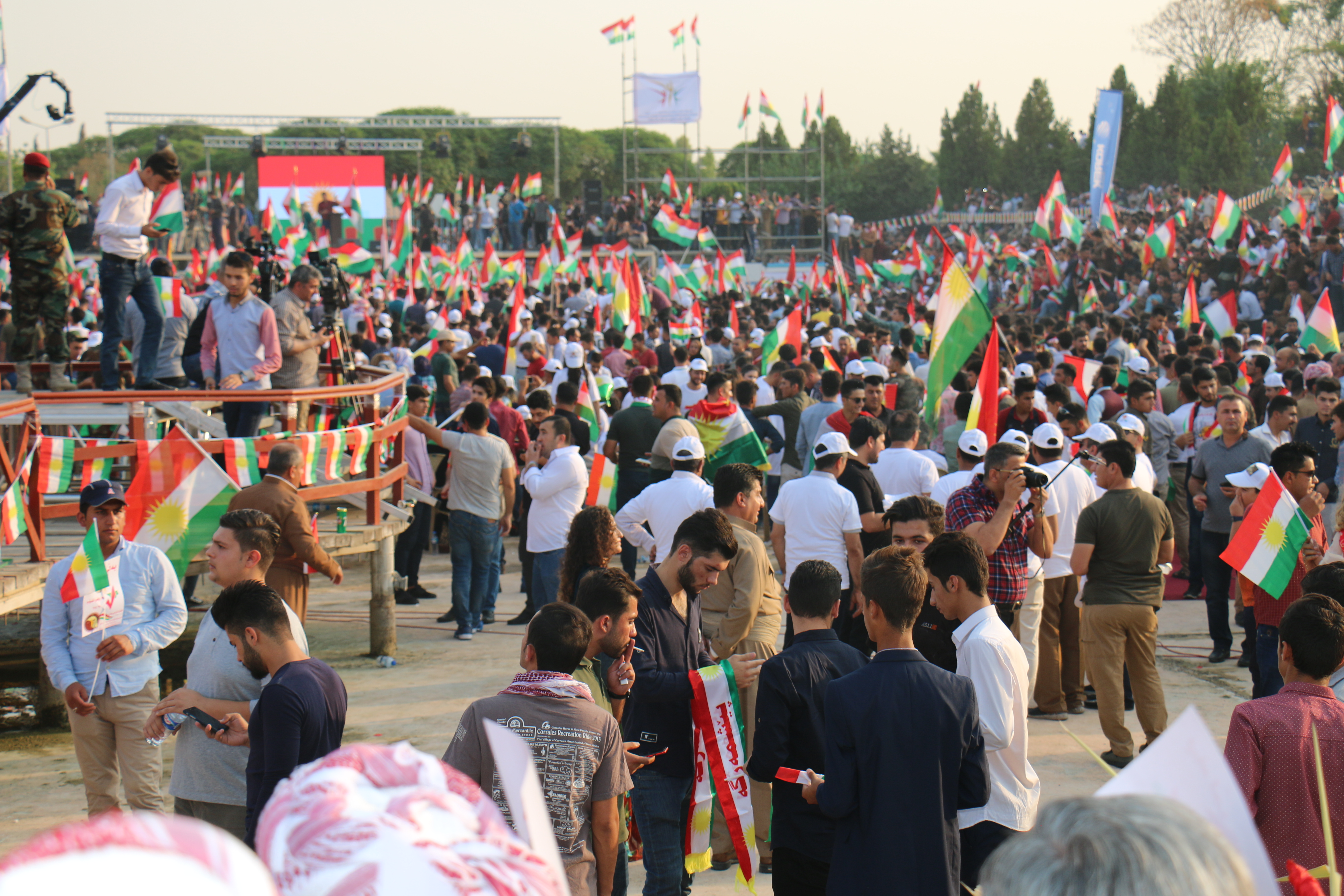 RojavaNews :لأول مرة في التاريخ الكوردستاني الحديث,تجمع أكثر من 20 ألف كوردستاني من الأجزاء الأربعة من كوردستان ,في كرنڤال إحتفالي غير مسبوق, و حدث ٍ تاريخي ٍ للشعب الكوردي,عصر اليوم السبت 16 أيلول 2017 وإحتفلوا دعما ً لإستفتاء إستقلال إقليم كوردستان , في حديقة شانَدَر, في العاصمة الكوردية هولير.