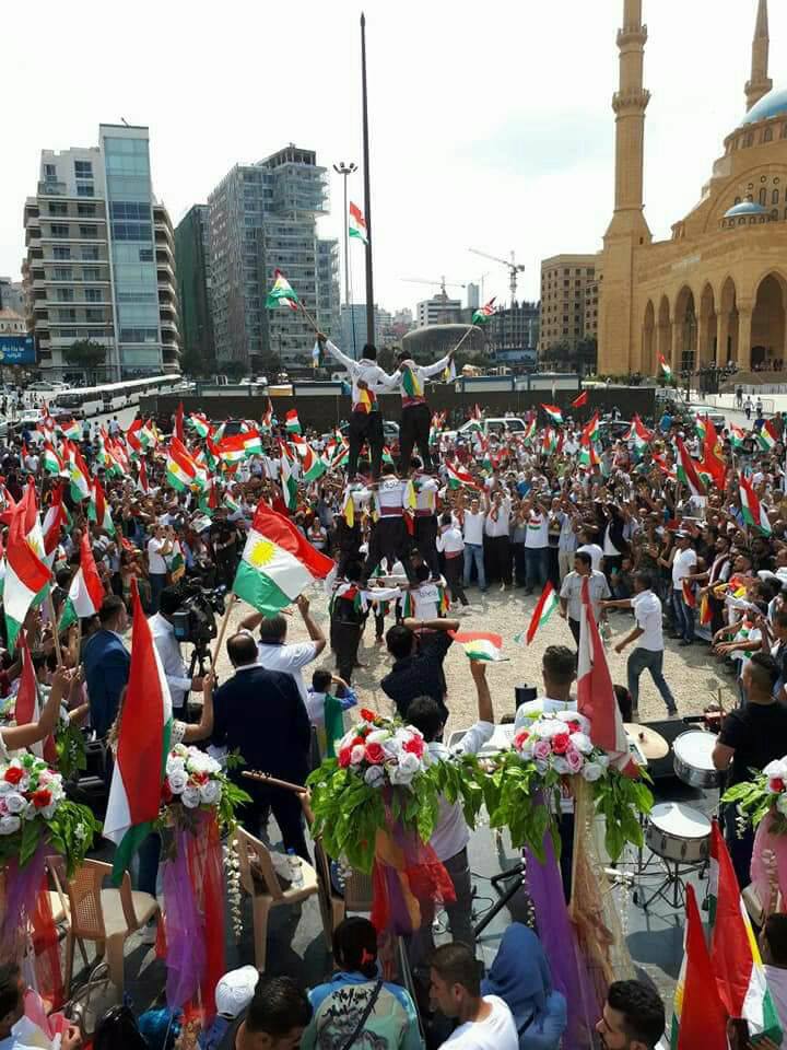 RojavaNews: بحضور الآلاف من أبناء الجالية الكوردية في لبنان و تحت شعار نعم للإستفتاء أحيت منظمة لبنان للحزب الديمقراطي الكوردستاني – سوريا و بمشاركة ممثلية لبنان لإتحاد الطلبة و الشباب الديمقراطي الكوردستاني – روجافا كرنفالا اليوم في ساحة الشهداء في وسط العاصمة اللبنانية بيروت .