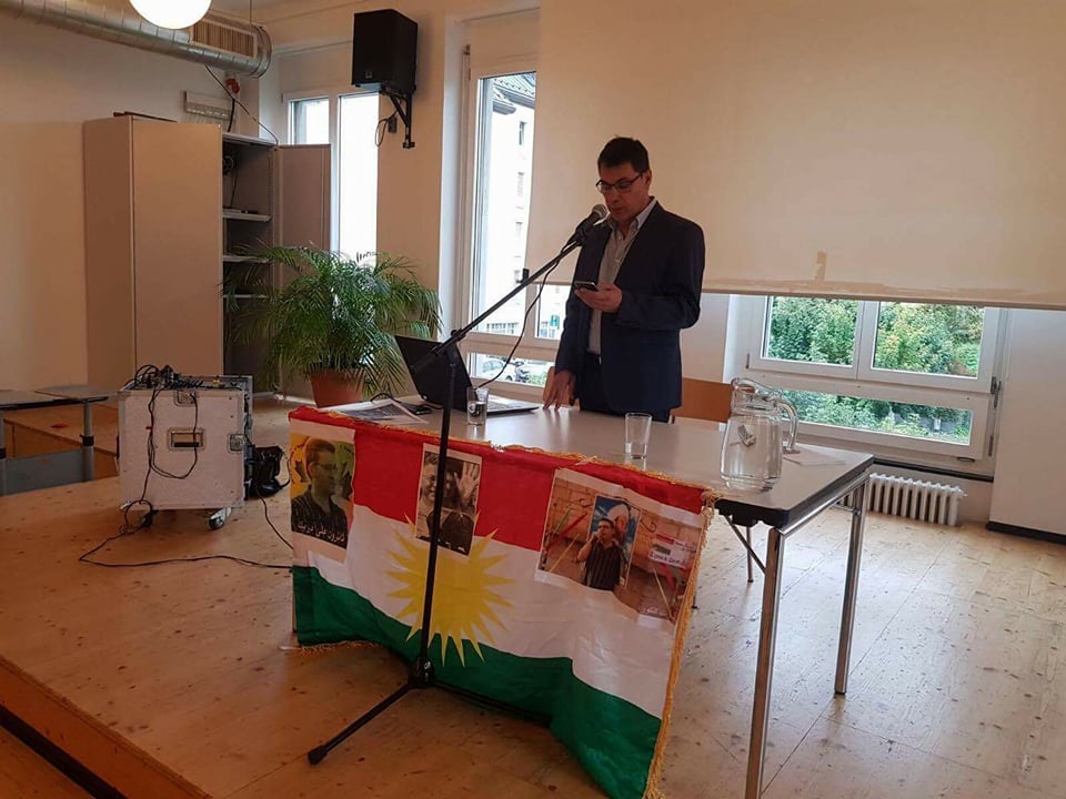 RojavaNews:أقامت محلية سويسرا للمجلس الوطني الكوردي في سوريا حفل تأبين لشهيد الكلمة الشهيد مشعل تمو بالذكرى السادسة لاستشهاده، يوم الاحد الموافق 8 / 10 / 2017 في مدينة زيورخ السويسرية، بحضور عدد من الاحزاب الكوردية والشخصيات الوطنية. بدأ التأبين بالوقوف دقيقة صمت على روح الشهيد مشعل تمو مع عزف النشيد الكوردي أي رقيب، وتلتها كلمة المجلس الوطني الكوردي في سوريا حيث أكد فيها على الشباب الكردي بان لا ينسوا شهدائهم الذين سطروا دماءهم ليعيش شعبهم، وإنه لا يمكن ان تذهب دماء الشهداء هباء منثورة وسيساق القتلة إلى محكمة الشعب العادلة. هذا والقى مندوبي الاحزاب الكوردية والشخصيات الوطنية كلماتهم، عن الشهيد مشعل تمو ومواقفه الجريئة التي دفع حياته ثمناً لها.