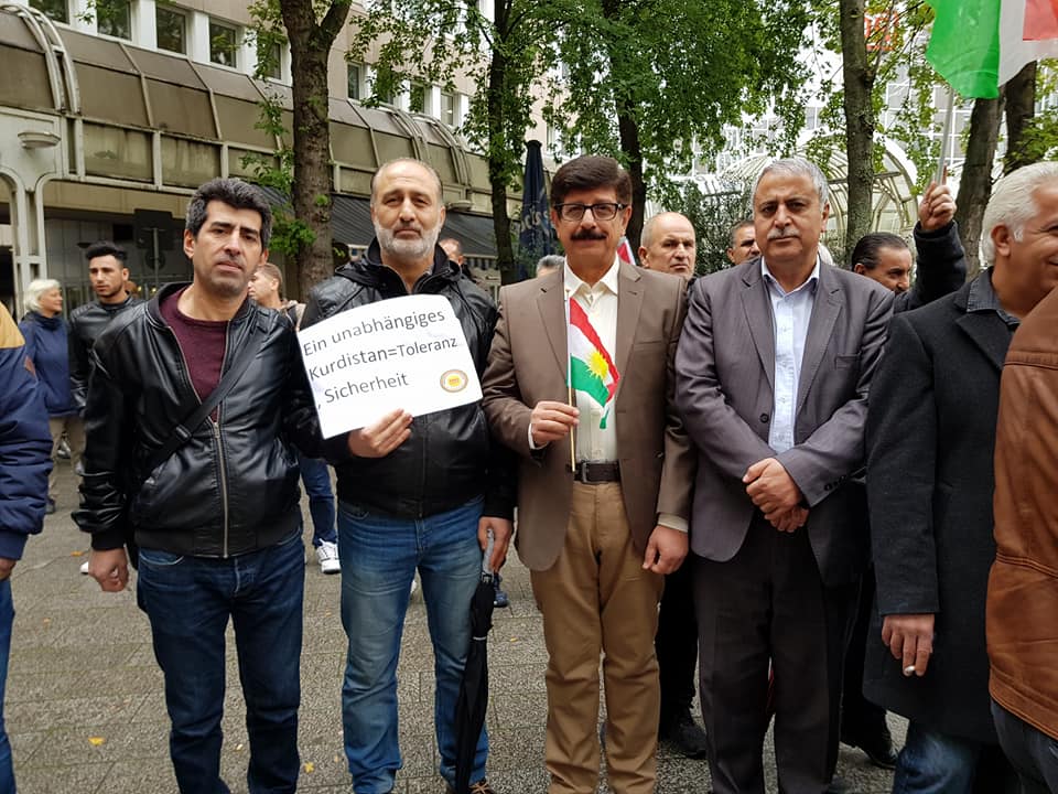 "نحن هنا اليوم في وقفة تضامنية وإعتصام ٍ لمساندة كوردستان ,في مواجهة الضغوطات والاجراءات العقابية عليها من حكومة بغداد ,نتيجةً لقرار الشعب في كوردستان بتصويت أغلبيته العظمى بنتيجة 92,27% بنعم للاستقلال ,ونحن كممثلية اوربا اعنا من قبل ونؤكد اليوم اننا ندين هذا الحصار ,وقد إعتصمنا في عموم اوربا لنوصل كلمتنا للدول الاوربية ومنظمات حقوق الانسان ,ونقول لهم انه من حق شعبنا الكوردي ان يقرر مصيره ويعيش في دولة مستقلة تحت ظلال علمه الخاص به " .