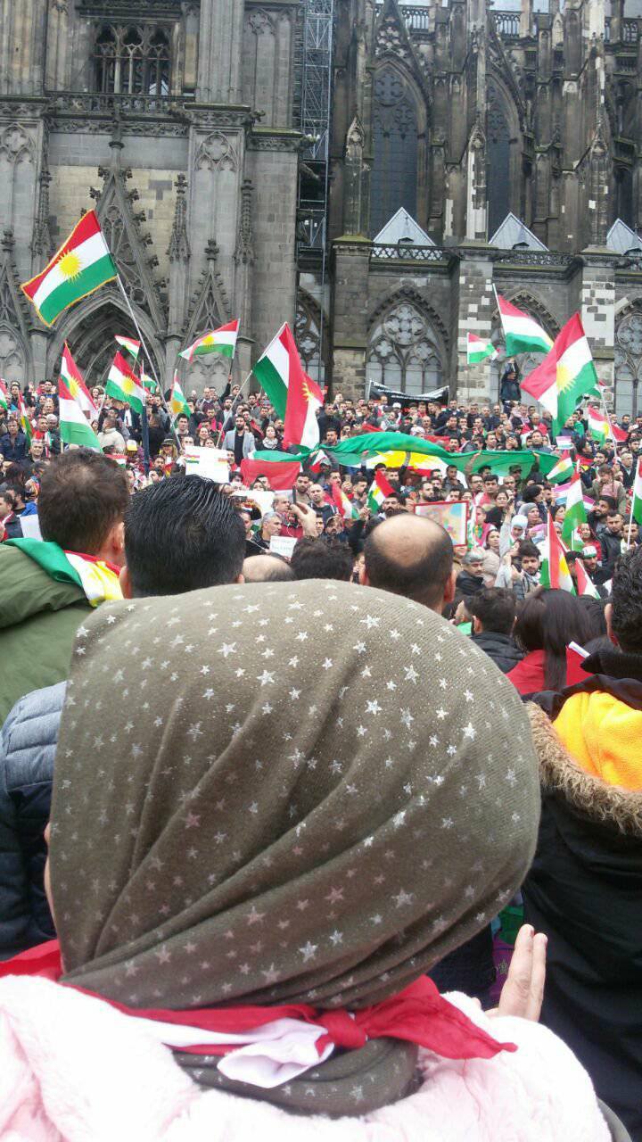 RojavaNews:تلبية ً لدعوة الرئيس مسعود البارزاني وتنديداً بالصمت الدولي حيال الهجوم البربري للحشد الشيعي، وميليشيات قاسم سليماني على كوردستان، نظمت الجالية الكوردية في مدينة كولن الألمانية تظاهرة جماهيرية يوم الأحد المصادف 22 تشرين الثاني 2017, شارك فيها آلاف من أبناء الجالية الكوردية في كولن.