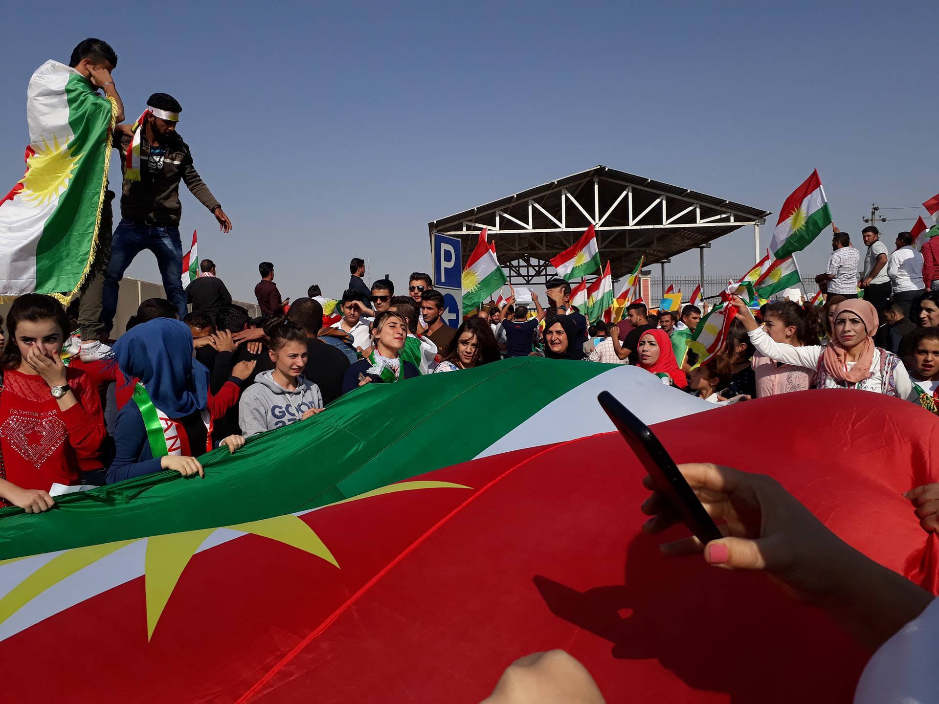 RojavaNews:نظم الحزب الديمقراطي الكوردستاني – سوريا " PDK-S " تظاهرة جماهيرية اليوم أمام مقر الأمم المتحدة في هولير شارك فيها آلاف الكوردستانيين رافعين شعارات التنديد بالهجوم البربري على كوردستان ومنادين بوحدة الصف الكوردي والوقوف يداً واحدةً لمواجهة هذا العدو.