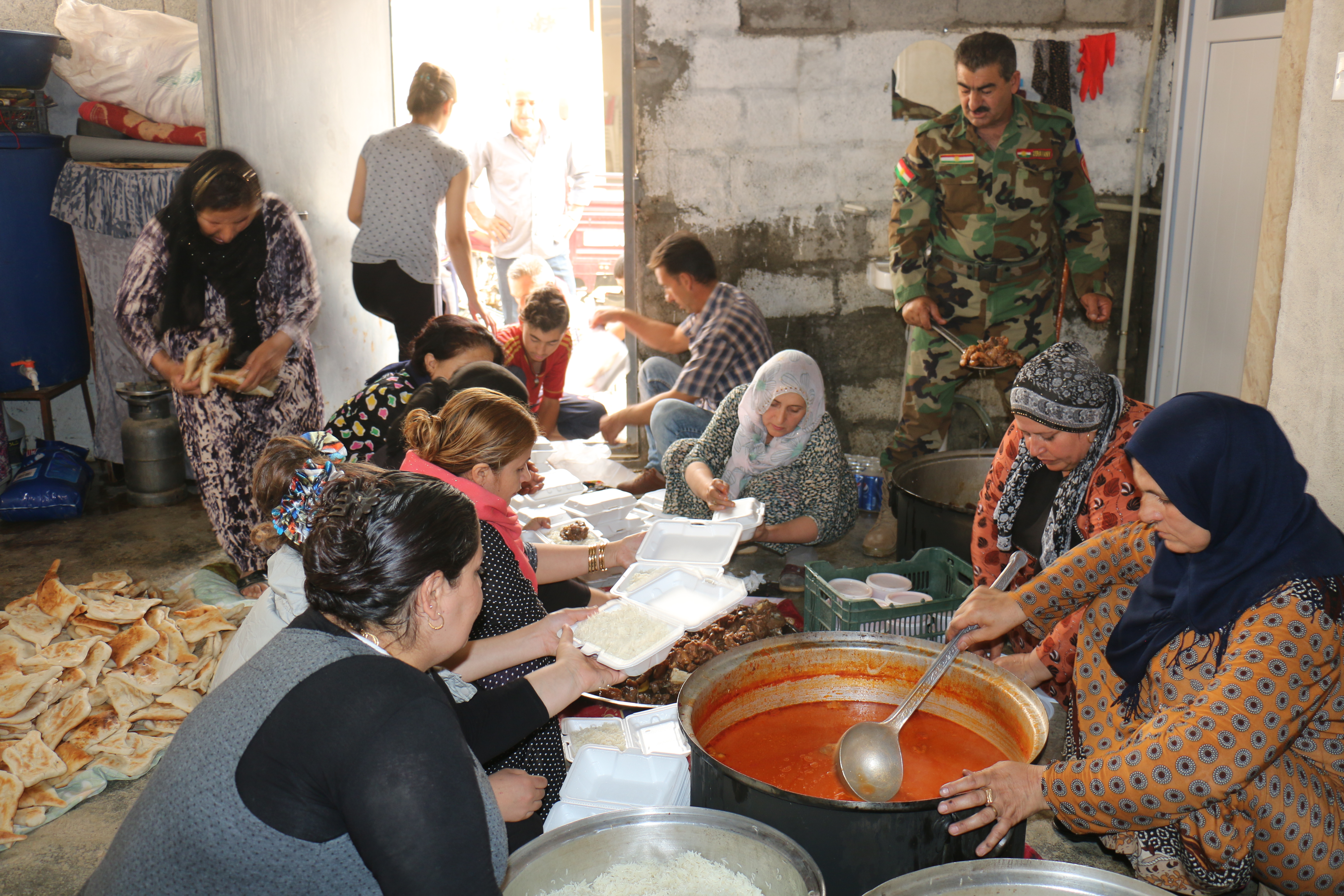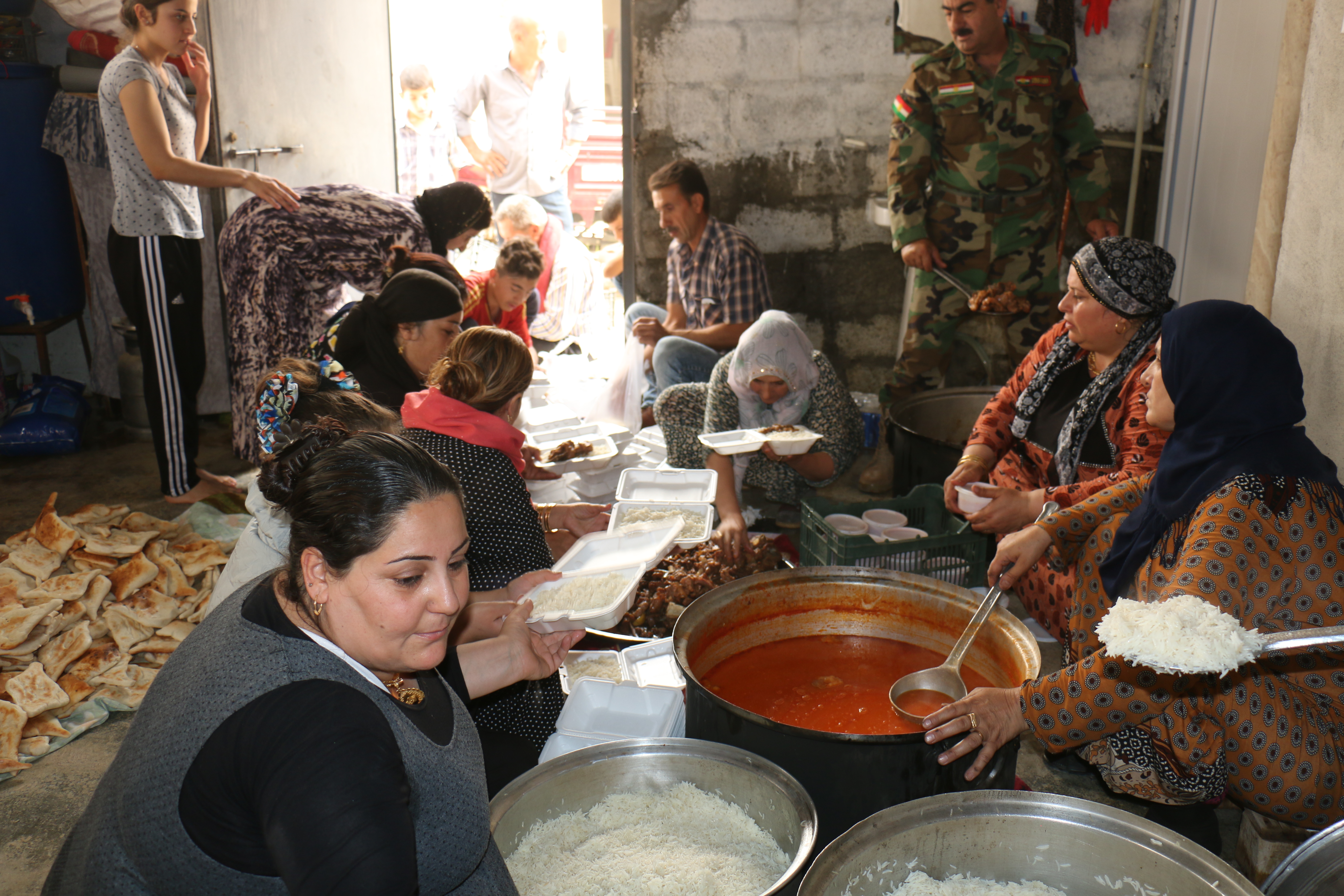 وقام فرع المرأة بتحضير هذه الوجبة في عملٍ جماعيٍ له داخل المخيم,حيث بدأنّ التحضير منذ الساعة الخامسة صباحاً حتى الانتهاء في 11 ظهراً ,كدافع ٍتشجيعيٍ معنويٍ لقوات الپيشمركَة التي سطرت ملاحم بطولية في محور پردى ,وأحبط هجوم ميليشيات الحشد الشعبي والجيش العراقي على كوردستان ,وكبدتهم خسائر فادحة ,إنسحبوا على إثرها بعد هزيمة نكراء