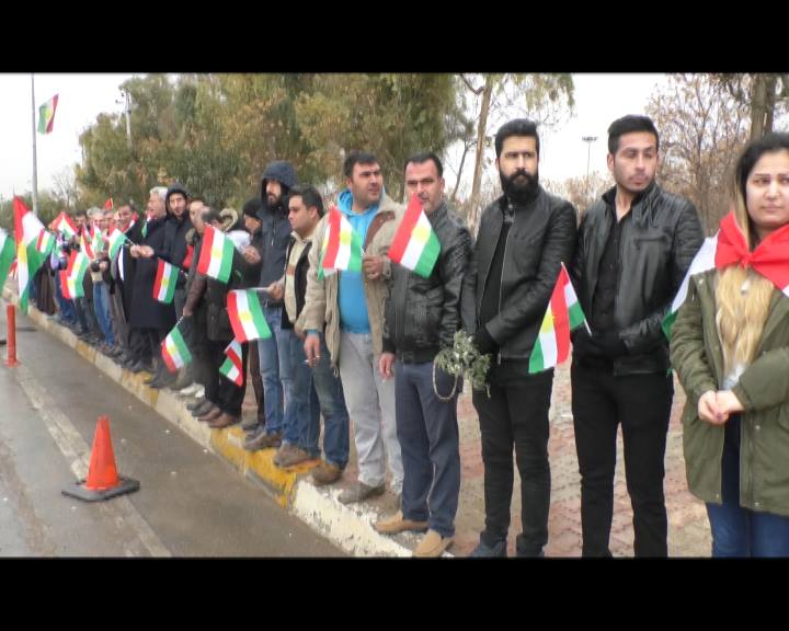 RojavaNews :بالتزامن مع اجتماع لبرلمان إقليم كوردستان، حول ما يجري في عفرين، تظاهر المئات من أبناء كوردستان سوريا، الثلاثاء،30 كانون الثاني 2018 ،في وقفة تضامنية مع عفرين ،وللتنديد بالقصف التركي عليها ،الذي طال المدنيين من أطفال ونساء.
