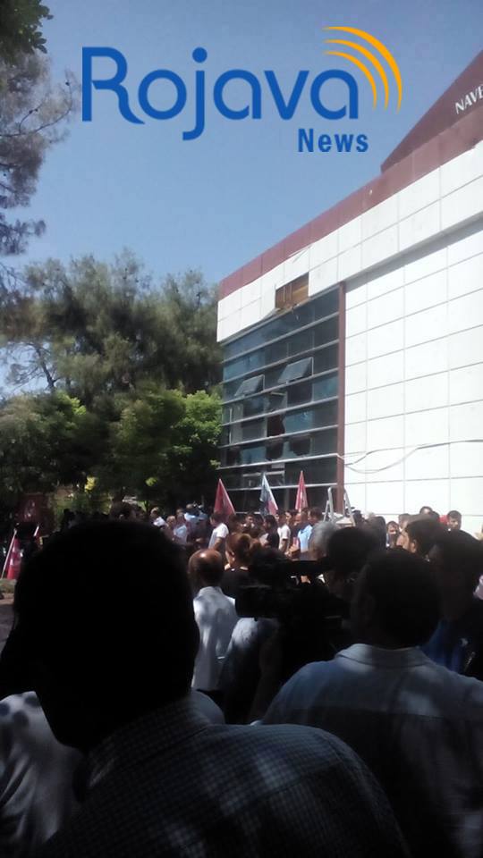 Rojava News ــ سروج: أفاد الناشط شيرو علو من مدينة سروج لـ Rojava News :" بأن حوالي 5 آلاف شخص تجمعوا في مكان التفجير الإرهابي بمدينة سروج بانتظار وصول رئيس حزب HDP صلاح الدين دمرتاش ليقوم بواجب العزاء وإلقاء كلمة عن موقف حزبه من العملية الإرهابية التي نفذها إرهابي داعش ".