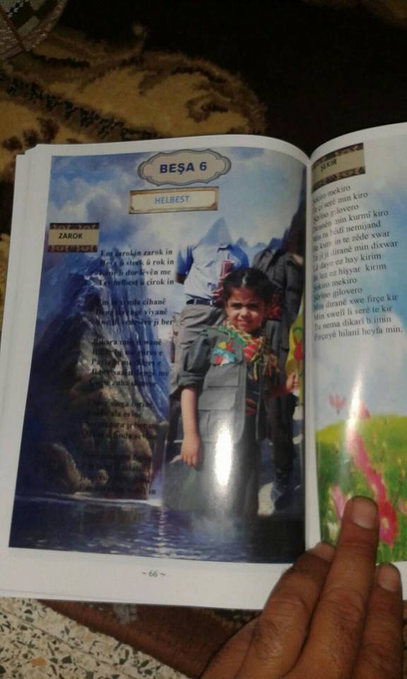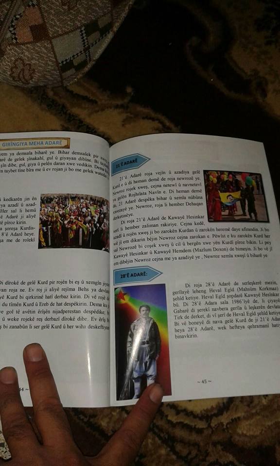 Rojava News: قام عدد من النشطاء بترجمة إحدى صفحات المناهج الدراسية (الجديدة) التي فرضها حزب الإتحاد الديمقراطي (ب ي د) على المرحلة الإبتدائية في منطقة عفرين، ونشرها على مواقع التواصل الإجتماعي الفيس بوك.