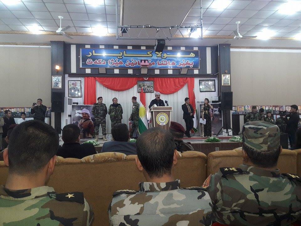 وثم القي العقيد بدل البندي كلمة بيشمركة كوردستان سوريا ( لهشكهرێ رۆژ) شاكراً تضحيات التى يقدمها اهالي كوردستان سوريا من اجل اجزاء الاربعة لكوردستان مستذكرا بطولاتهم وتضحياتهم التي يقدمونها بالقيادة حكيمة من سيادة الرئيس مسعود البارزاني .