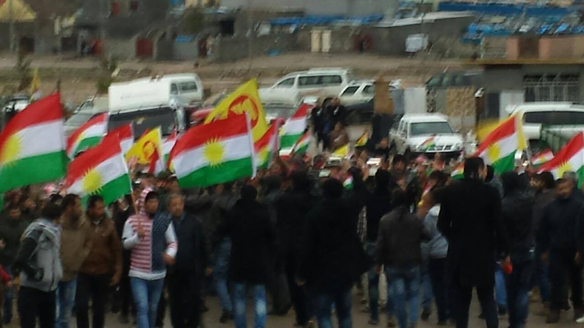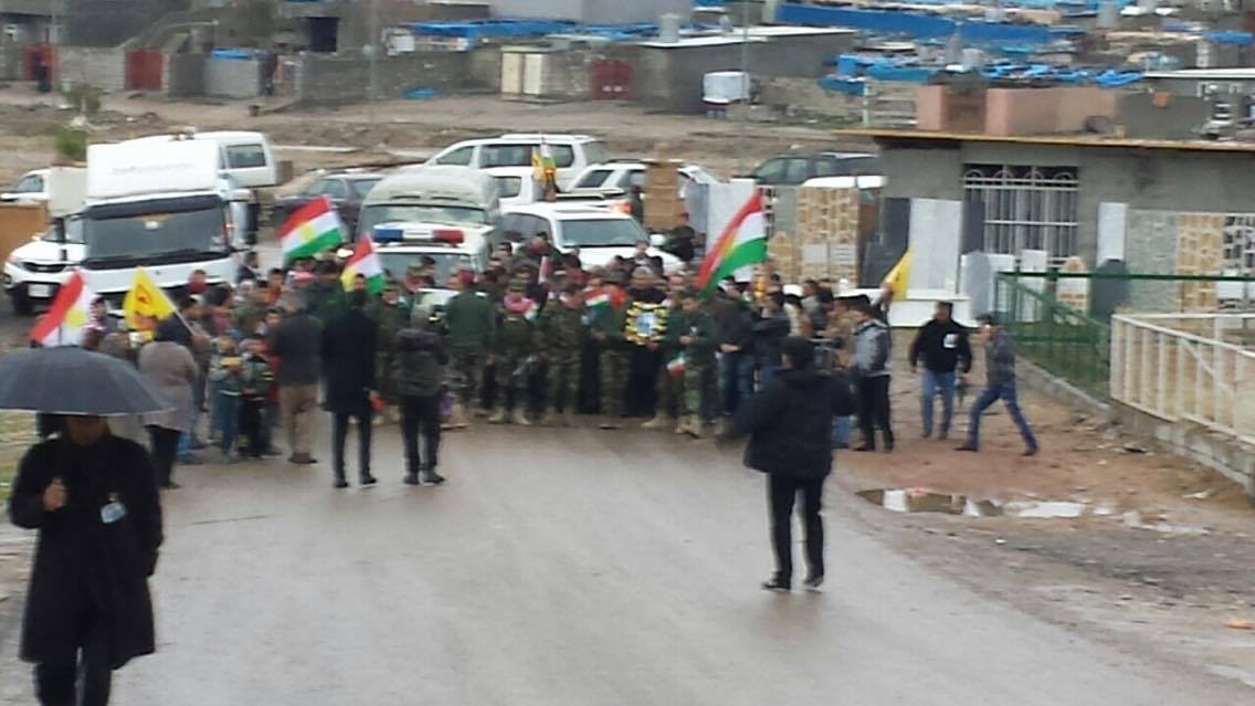 Rojava News ـ هولير: شارك مساء اليوم الثلاثاء 5-1-2016، عدد غفير من مواطني كوردستان سوريا المقيمين في هولير ومخيمات اللجوء، وعدد من ضباط بيشمركة روجآفا ورفاقه من البيشمركة، بمراسيم دفن البيشمركة الشهيد (صلاح الدين سعيد حسو)، في منطقة كسنزان بهولير.