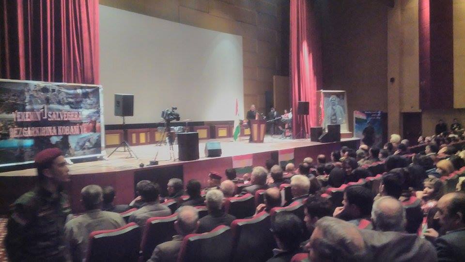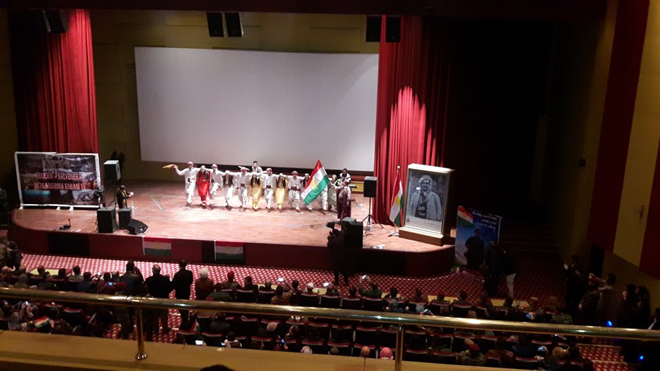 RojavaNews_هولير: بمبادرة من مجموعة من نشطاء كوباني وبمناسبة ذكرى مرور عام على تحرير مدينة كوباني قام في الساعة السادسة من يوم الثلاثاء الواقع في 26/1/2016 مهرجاناً فنيا في هولير عاصمة إقليم كوردستان وذلك على مسرح قاعة بيشوا في مبنى وزارة الثقافة والشباب لإقليم كوردستان , قاعة بيشةوا– هۆڵی پێشهوا - والدعوة عامة.