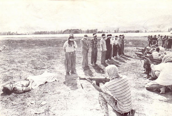نعم وكان باستغلال نفس الفلسفة اللا إسلامية واللا إنسانية تمكن الخميني استغلال عواطف الناس المذهبية واتهام الشعب الكردي بالانقسام والتجزئة أصدر فتوى يوم 19/آغسطس –آب 1979 أي بعد 6أشهر من سقوط الدكتاتورية السابقة أعلن حرباً شاملةً تحت شعار ” الجهاد على الكفار“ على الشعب الكردي وبالتالي أرسل عددا من الجلادين والسفاكين وعلى رأسهم الملا صادق خلخالي إلى محافظة كردستان حيث أقاموا فرق الموت بشنق الأهالي المساكين في عدد من القرى في جميع نقاط كردستان إضافة إلى ارتكاب المجازر وتشكيل المحاكم الصحراوية التي لا تطول أكثر من دقيقتين أو ثلاث دقائق وبالتالي شنق الأهالي أو رميهم بالرصاص... فويل للقاسية قلوبهم ..