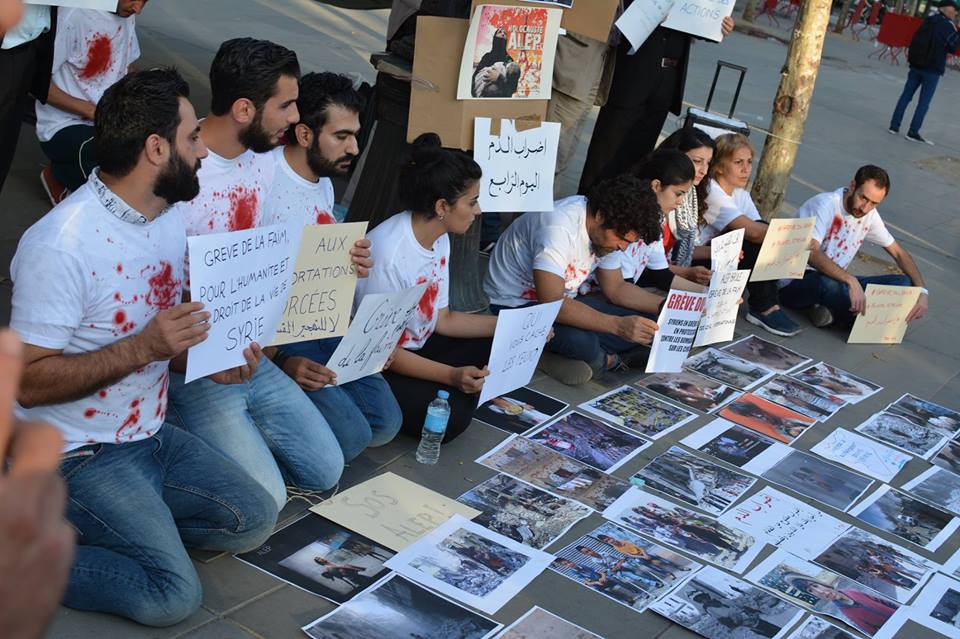Rojava News - باريس: قامت مجموعة من الشباب السوريين المستقلين بإضراب مفتوح عن الطعام في باريس، تنديداً بالقصف الروسي والأسدي على المناطق التي يسكنها المدنيين في حلب وباقي المحافظات.