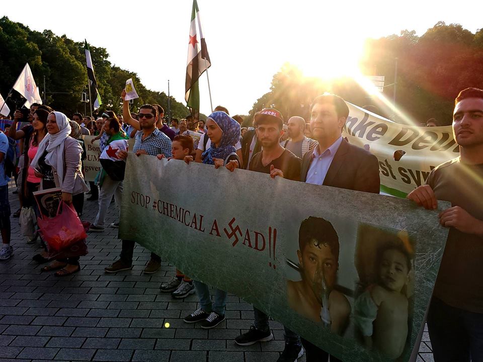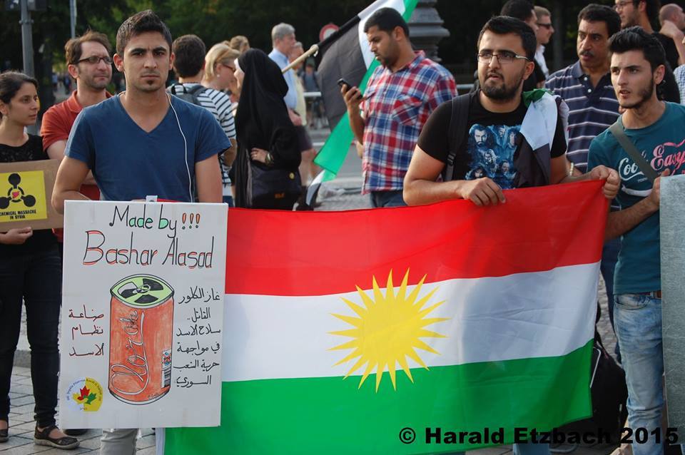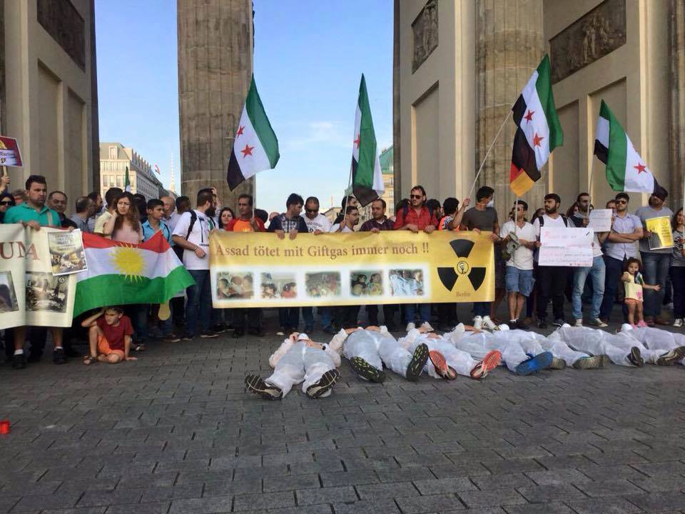 Rojava News: تظاهرت الجالية السورية ومن ضمنهم الكورد السوريون في العاصمة الألمانية برلين وفي العاصمة البريطانية لندن أيضاً، يوم أمس السبت الموافق / 22 / 8 / 2015 /، لأحياء الذكرى السنوية الثانية لمجزرة الكيماوي والمجزرة الأخيرة التي حصلت في دوما، على يد النظام السوري، وراح ضحيتها أكثر من 1400 سوري جلهم من الأطفال والنساء.