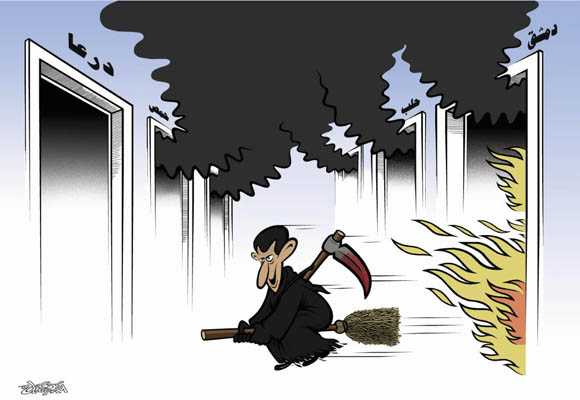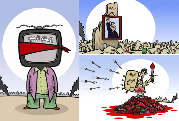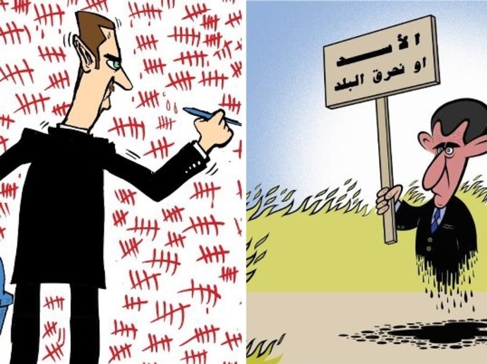 وكانت المخابرات العسكرية فرع حماة اعتقلت رسام الكاريكاتير أكرم رسلان من مقر عمله في جريدة "الفداء" الحكومية في / 2 / 10 / 2012/، حيث قام رسلان بنشر العديد من رسوم الكاريكاتير في عدة صحف يهاجم فيها ممارسات النظام ويعلن انتماءه للثورة السورية.
