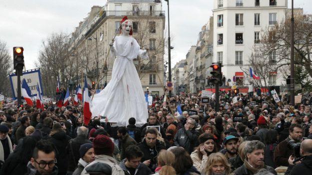 Îro serokên qasî 50 dewletan û serokên hikûmetan bi hezaran kes di saet 15.25an de li Parîsa paytexta Fransayê li hev civiyan ku êrîşa terorê ya ku 17 kes miribûn şermezar bikin. Komê bi navê "Meşa Komarê" meşek dan destpêkirin.