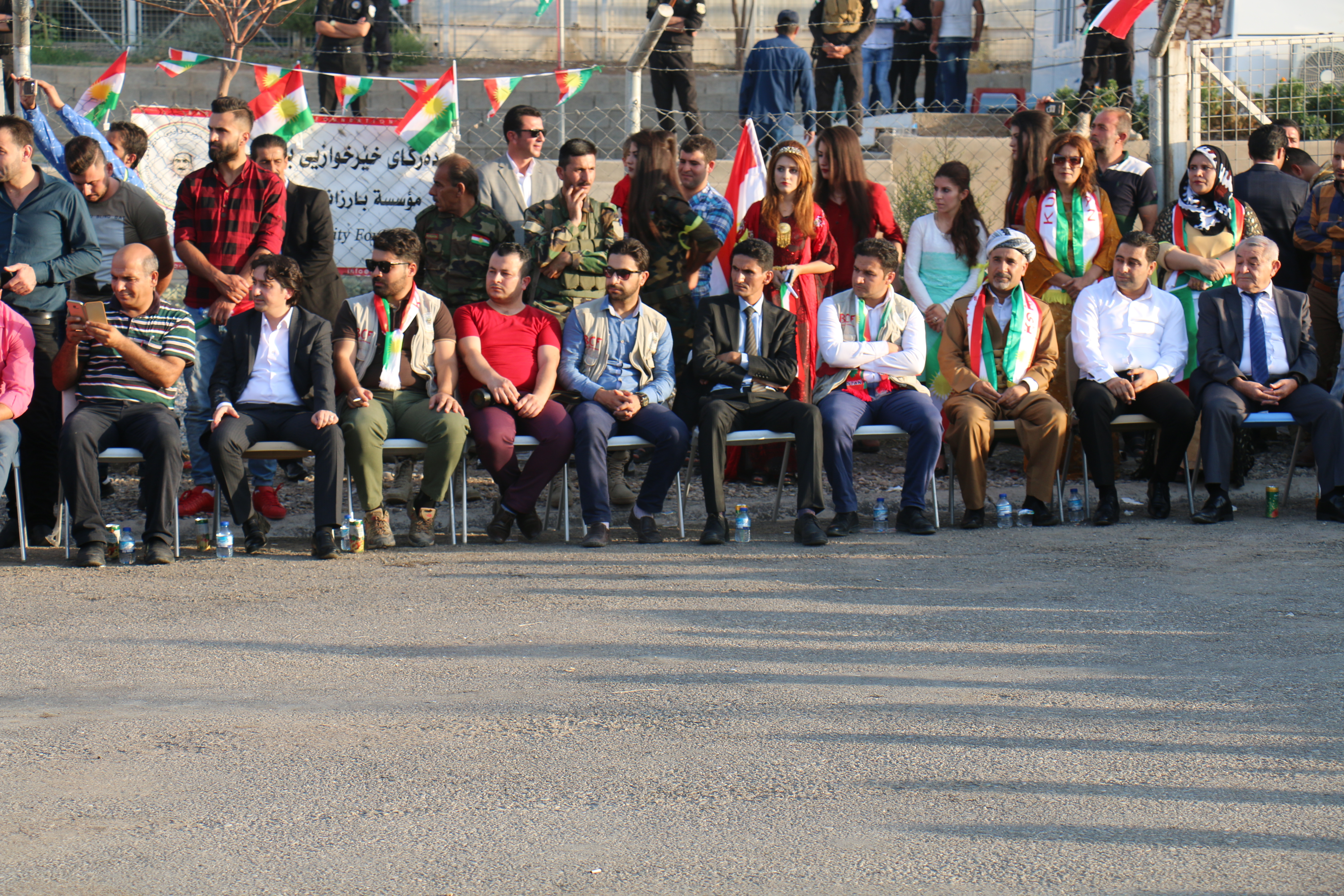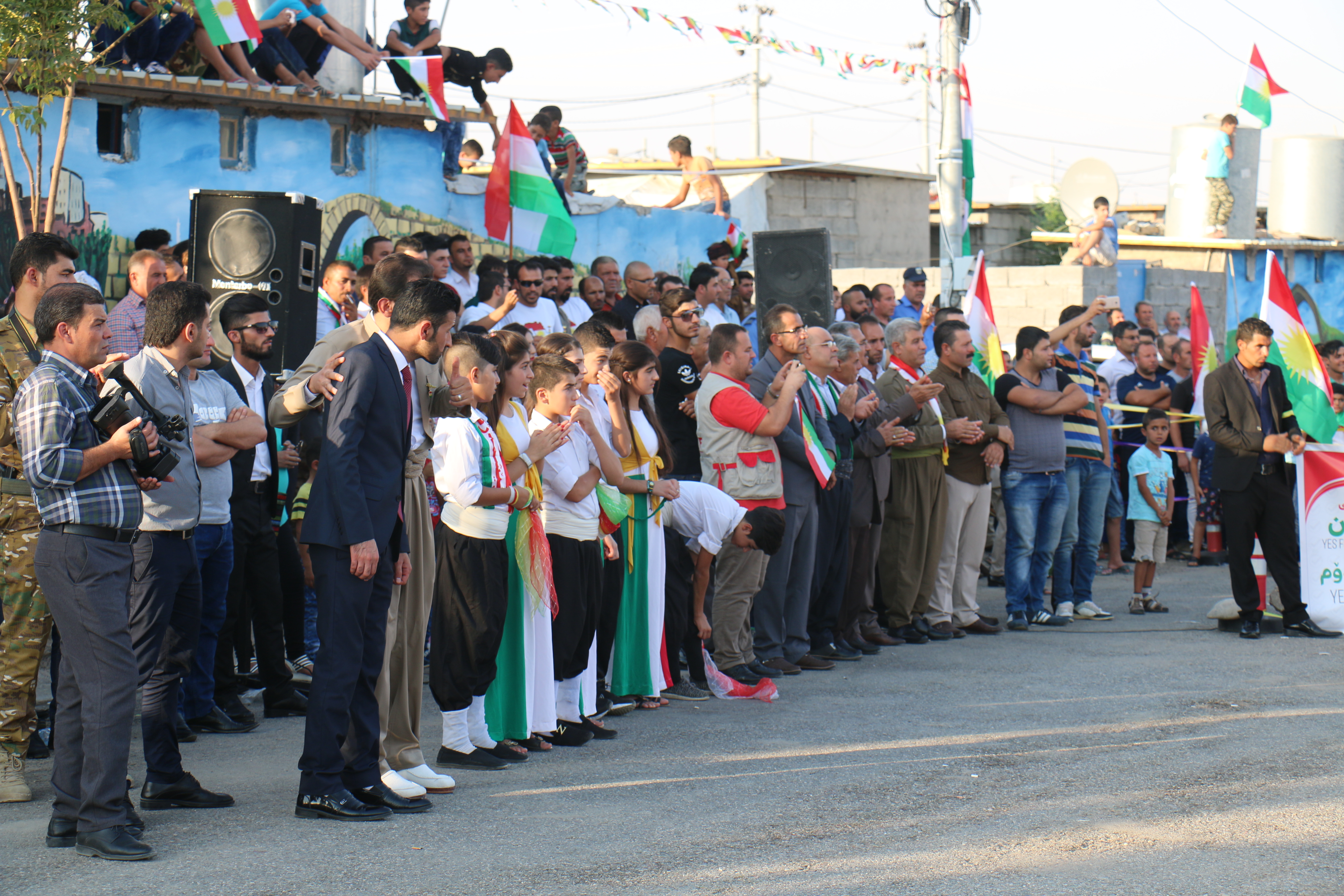 Bi beşdariya Encumena Niştimaniya Kurdî ENk-sê,û endam ,serkirde û alîgirên Partiya Demukrata Kurdistan-Sûriya , Rêxistina Kampa Giwêlan û navçeya hewlêrê û şanda nivîsgeha peywendiyên niştimanî ya PDK-Sê li herêma Kurdistanê,Şandek ji Partiya Demukrata Kurdistana -îraqê PDK ,rêvebiriya dezgeha xêrxwaziya Brzanî û asayîşa kampê ,ahingê bi sirûda netewî ya kurdî ey reqîb dest pêkir.