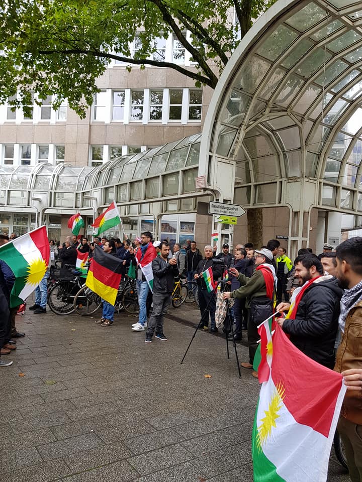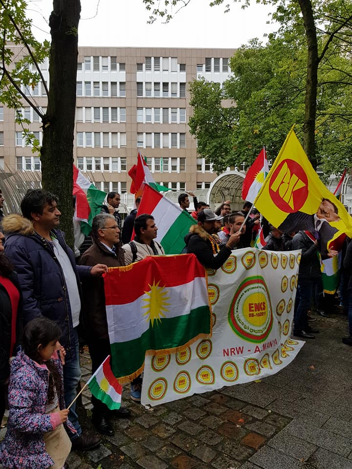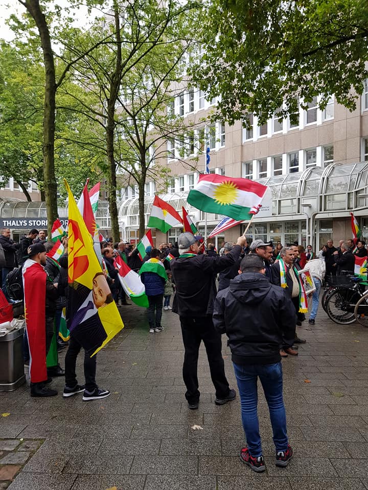 Ebdulkerîm Hacî Serokê Nûnertiya ENKê li Ewrupa jibo RojavaNews got:Em hatine vêderê jibo piştevanî û palpiştiya Kurdistanê lidijî fişar û sizayên Hikûmeta navendî li Bexdadê ku biser Herêma Kurdistanê de disepîne , jiber ku Kurdan Mafê xwe yê yasayî bikar aniye û jibo serxwebûna Kurdistanê Refrandom kirye û birêjeya 92% (bibelê) serket.