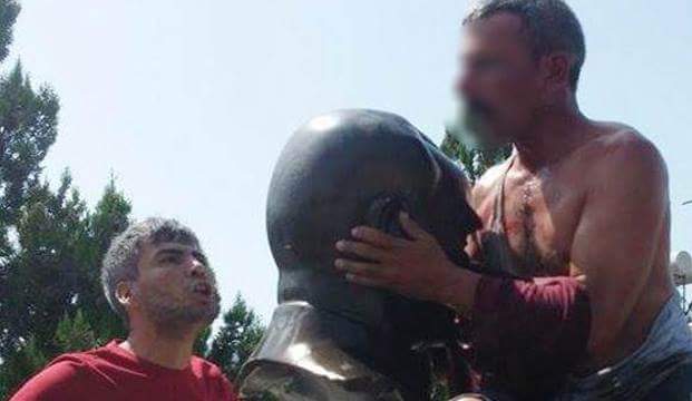 Vî Kurdî ji bo ku cil û bergê peşmerge li berin û gotiye ez ser bilindim bi kurdbuna xwe, ew darp kirine û birine ser heykelê Ataturk da Wi maçbike.