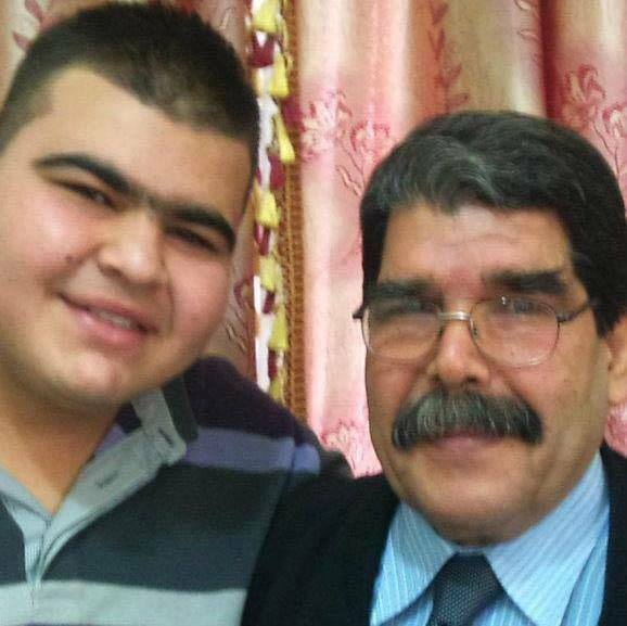 Kurê Salih Mislim li ofîca bavê xwe li Kurdistana Sûriyê li jêr wêneyê Hafiz Esed bavê serokê rêjîma Sûriyê yê diktato û li tenîşte Aleya wê rêjîmê wêneyê xwe kişandiye û belav kiriye.