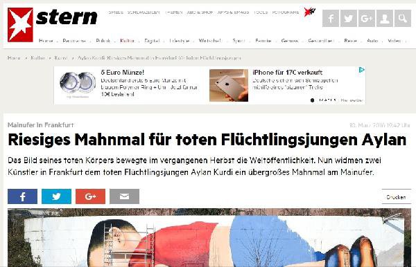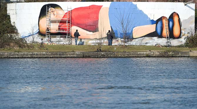 Du xortên wênesaz yên Alman, bi navên Justus Becker û Oguz Şen, wêneya Alanê Kurdî yê ku bere ji aliye Nilufer Demir ve hatibû kişandin û damîrê cîhanê êşandi bû li ser dîwarekî bilindiya wî 5 metr û firehiya wî 25 metir çêdikin.