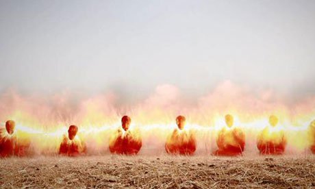 Di şêwazê sêyem de, 7 kes li çolekê hatine danîn, ku bi rêya kablekî serê wan bi hev ve hatine girêdan, piştre kareybayê li wan didin û serê wan diteqînin.