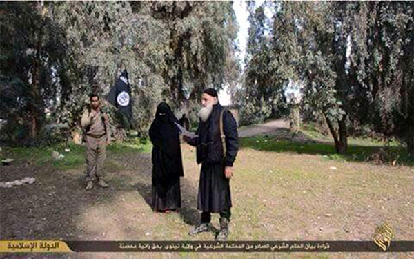 Li gor gotina wê çavkaniyê ew jin ji aliyê çend kesên biyanî ve ku ji wan re tê gotin DAİŞê Gerok li devera Xabat (Daristan) ya bajarê Mûsil`ê hatiye kevirbarankirin.