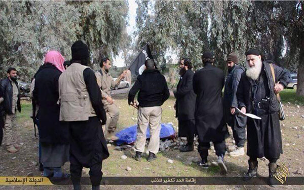 Dewleta Îslamî jinek li bajarê Mûsil`ê jiber ku ew amade nebûye Cîhad ya Nîkahê digel çekdarekî Rêxistina Dewleta Îslamî ya Îraq – Şam`ê (DAIŞ) bike dane ber keviran û ew kuştine.