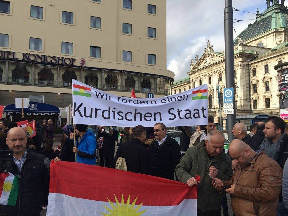 RojavaNews_ميونغ ألمانية: قامت ممثلية أوربا للمجلس الوطني الكوردي, يوم السبت 13-02-2016, بمظاهرة جماهيرية كبيرة في مدينة ميونغ الألمانية لدعم مواقف الرئيس بارزاني في مؤتمر الدولي للأمن العالمي في ميونغ المانية لعام 2016.