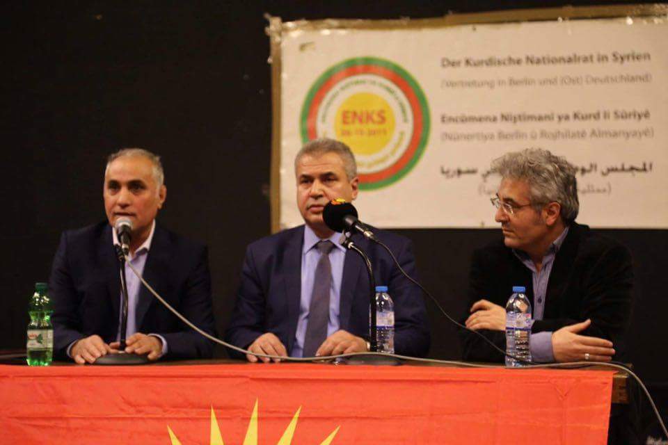 RojavaNews_برلين: نظمت ممثلية أوربا للمجلس الوطني الكُوردي ( محلية برلين وشرق المانيا ) ندوة سياسية جماهيرية لرئيس المجلس الوطني الكُردي \ ابراهيم برو ضمن سلسلة الندوات التي أقيمت في المانيا وبحضور سيامند حاجو عضو مكتب العلاقات الخارجية وبعد الترحيب بالحضور والضيوف من قبل حسين محمد رئيس محلية برلين وشرق المانيا ، بدأت الندوة بالوقوف دقيقة صمت على أرواح الشهداء الكورد ، وبحضور كبير للجالية الكوردية وممثلي الأحزاب الكُوردستانية المتواجدة في برلين والعديد من المثقفين والكتاب والشخصيات الوطنية.