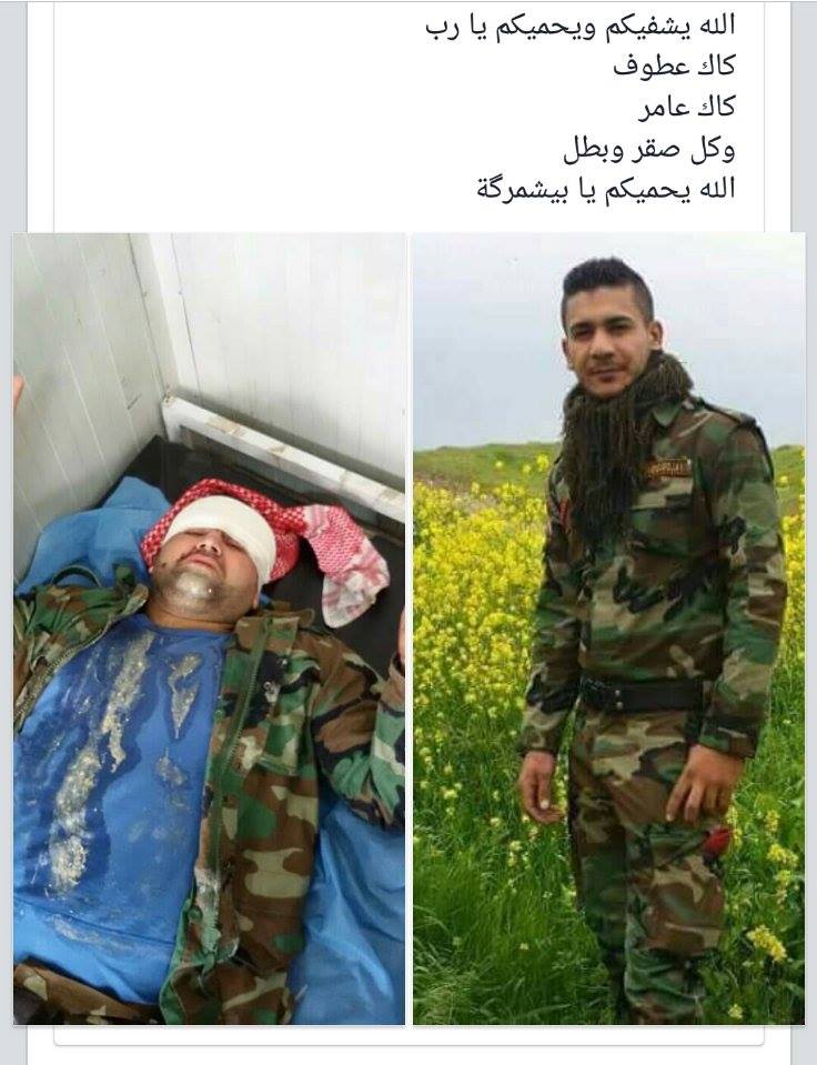 وحسب معلومات التي حصلت عليه RojavaNews بأنه جرح خمسة من البيشمركة كوردستان سوريا (لهشكهرێ رۆژ) ومنهم (البيشمركة سرهد فرحان ابراهيم 19 عاماً)من قرية "كربكيلي" في منطقة جل آغا , و (البيشمركة عامر عبد الرحمن عمر 20عاماً) من قرية "كركي دجوير" وحالته حرجة والبيشمركة عمار عمر و البيشمركة روني يوسف احمد.و الملازم "عطوف طاهر عمر" احد ابطال بيشمركة كوردستان سوريا في محور "كسكي"خلال هجوم ارهابي لــ "داعش " على قواتهم وهو الان في احد مشافي هولير.