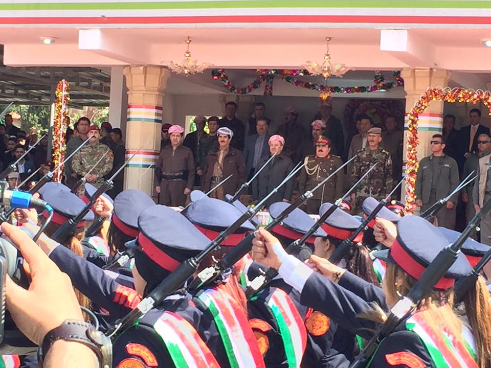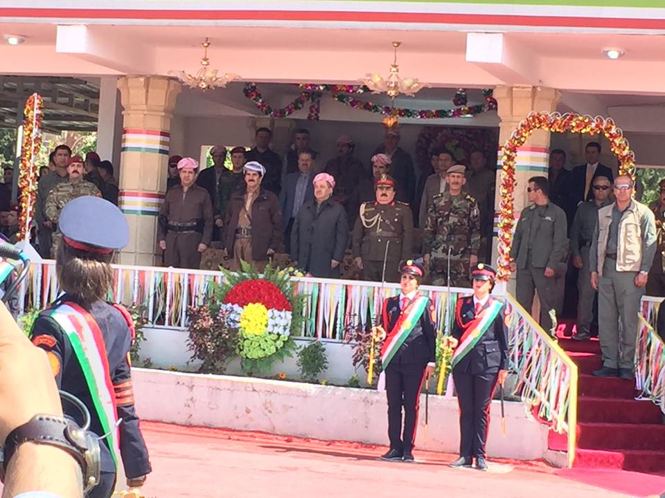 وقدم البارزاني في كلمة له، خلال مراسم تخرج 201 ظابطة من البيشمركة في اكاديمية زاخو العسكرية، اليوم الاربعاء، تبريكاته وتقديره للضابطات واساتذتهن والمشرفين على الاكاديمية العسكرية، مشددا على ان "زاخو الثائرة تستحق جميع انواع الخدمات".