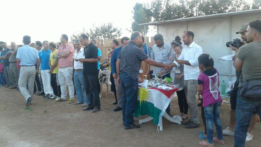 Rojava News - عامودا: نظم مكتب الانشطة الرياضية في السكرتاريا لإتحاد الطلبة والشباب الديمقراطي الكوردستاني - روژافا، مباراة لنادي الاتحاد مع نادي الاهلي في عامودا تكريما لذكرى الشهيد شفان ولي.