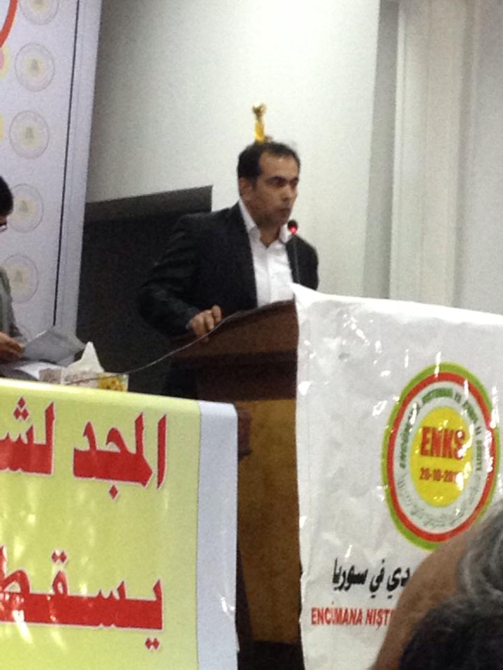 وبحضور عدد كبير من اللاجئين الكورد السوريين وقيادي الاحزاب الكوردية والشخصيات الوطنية والمستقلة ومنظمات المجتمع المدني وبعد الوقوف دقيقة صمت علئ ارواح شهداء الثورة السورية وشهداء مجزرة عامودا تم القاء كلمة ممثلية الاقليم للمجلس الوطني الكوردي من قبل "خالد علي" حيث ادان بشدة هذه المجزرة وتصرفات ال pyd بحق ابناء الشعب من الكوردي من قتل وخطف واعتقال وطالب بمحاسبة مرتكبي هذه المجزرة وتحقيق القصاص العادل للقتلة وتعويض اهالي الشهداء.