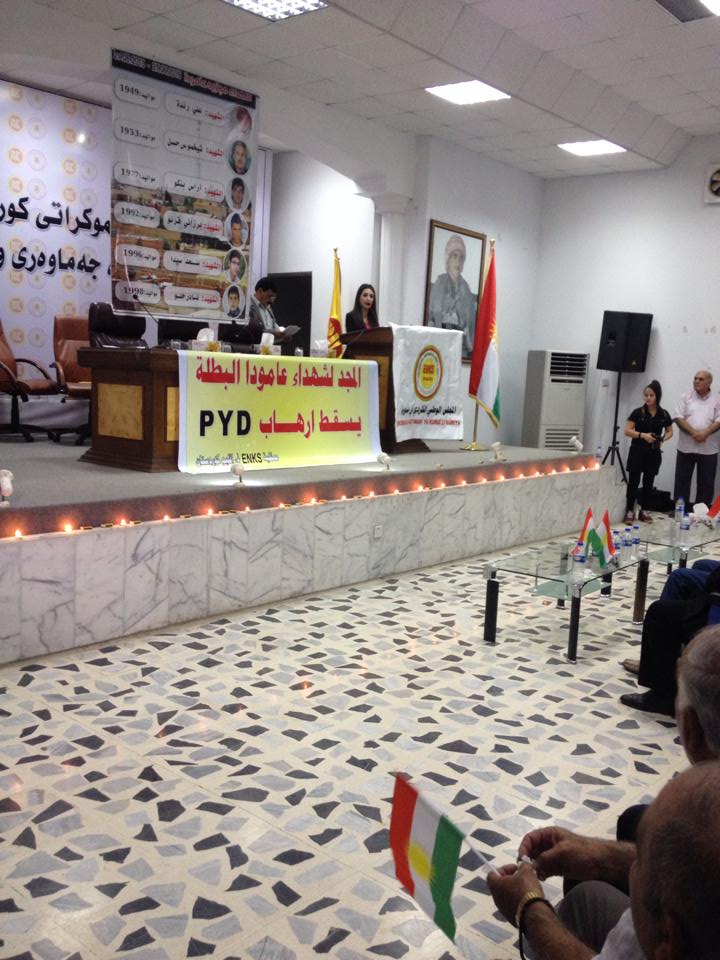 Rojava News - هولير: احييت ممثلية اقليم كوردستان للمجلس الوطني الكوردي يوم أمس الاثنين 27 / 6 / 2016 الذكرى الثالثة لمجزرة عامودا التي راح ضحيتها ستة شهداء مدنين من مدينة عامودا في محافظة الحسكة السورية على يد قوات الحماية الشعبية المتمثلة ب ypg الجناح العسكري لحزب الاتحاد الديمقراطي pyd.