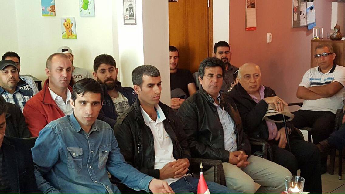 زمان حسين عضو الممثلية وحسين فياض رئيس المحلية والدكتور لقمان حسين عضو المحلية لقاءاً جماهيرياً مع الجالية الكردية في مركز كوملا هيلين في مدينة ايسين في ٢ تموز ٢٠١٦