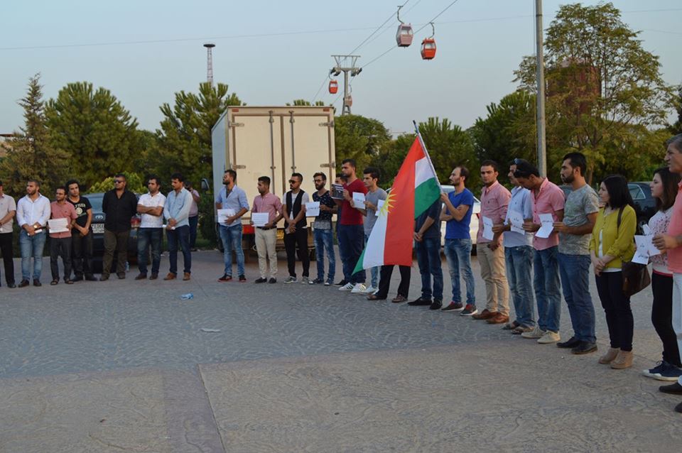 RojavaNews: شارك يوم امس الاربعاء اتحاد الطلبة والشباب الديمقراطي الكوردستاني – روج افا في الاعتصام التضامني تنديدا بجرائم النظام الإيراني بحق النشطاء الكرد وقوفها مع رئيس النظام السوري ضد الثورة السورية ومطالبة المجتمع الدولي بتدخل لوضع حد لسياسته وحل القضية الكردية في كوردستان الشرقية امام حديقة شاندر .