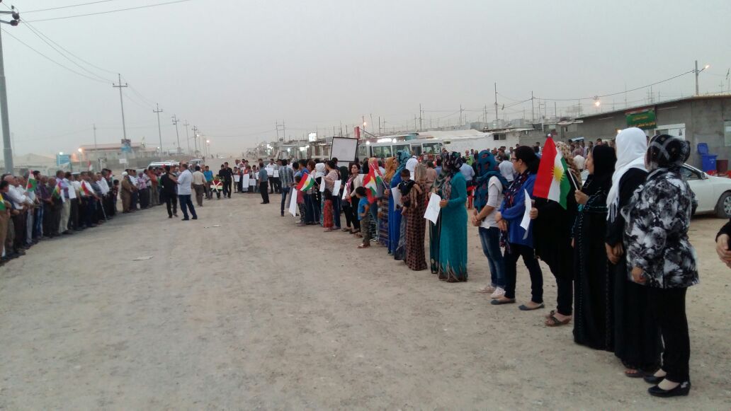 RojavaNews_مخيم فايدة: خرجت مئات من لاجئي كوردستان سوريا في مخيم فايدة بمدينة دهوك في إقليم كوردستان , اليوم 26/8/2016 تنديداً بممارسات الـ PYD .