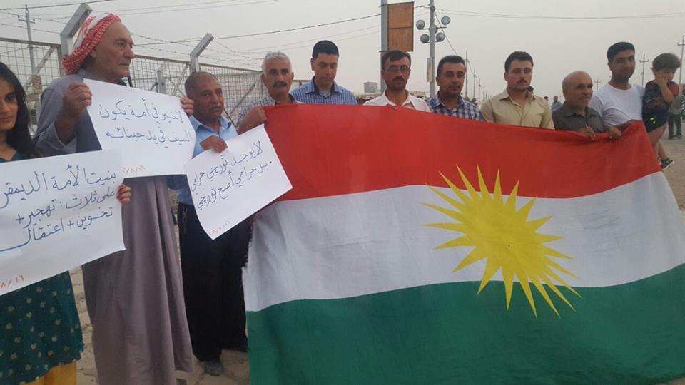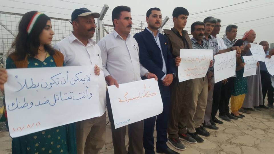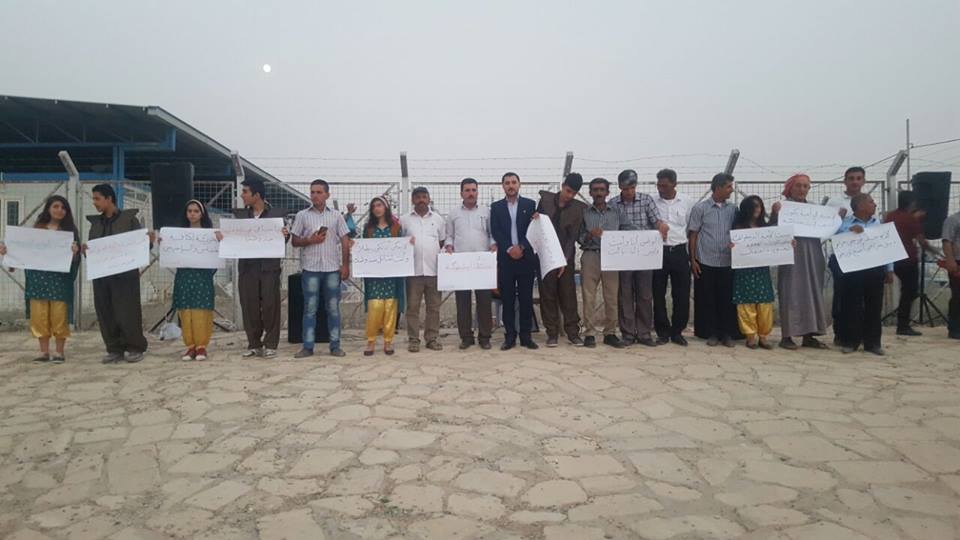 Rojava News: خرج اللاجئون الكورد في مخيم داراشكران بإقليم كوردستان في اعتصام جماهيري ضد سياسات وممارسات حزب الاتحاد الديمقراطي (PYD) واستنكارا لاعتقال القيادات الكوردية والاستخفاف برموزها ومقدساتها القومية، بحضور عضو ممثلية الإقليم رامان ملا، وممثلي أحزاب المجلس في المخيم، وحشد كبير من أهالي المخيم.