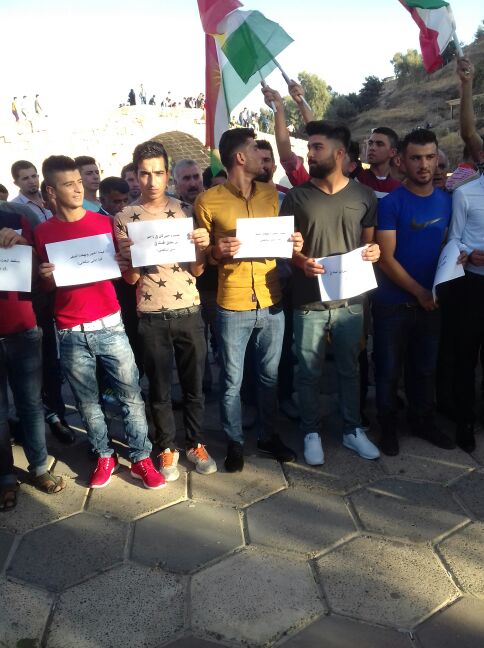 RojavaNews_زاخو: تظاهرت مئات من ابناء زاخو و عشيرة "خێرگا" في مدينة زاخو , اليوم 13/9/2016, تضامناً مع قرية " شكفتێ " في كوردستان سوريا و معتقلين الكورد في سجون الحزب الاتحاد الديمقراطي الـ PYD , في مدينة قامشلو.